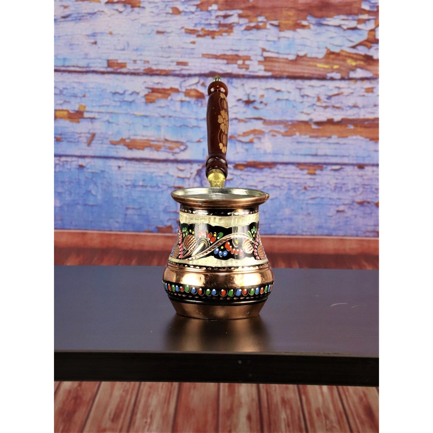 إبريق حليب نحاسي – من موريا – إبريق قهوة، زهرة الورد، مطلي بالمينا، 7-8، أكواب 500 مل