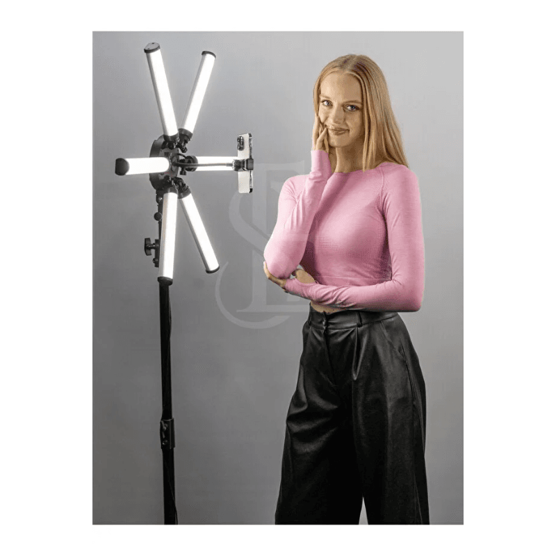 مصباح اضائة مرن ب4 اذرع مصمم خصيصا للاضاءة في التصوير والمكياج والوشم مع ترايبود بارتفاع 2.1 متر من ان سيجا