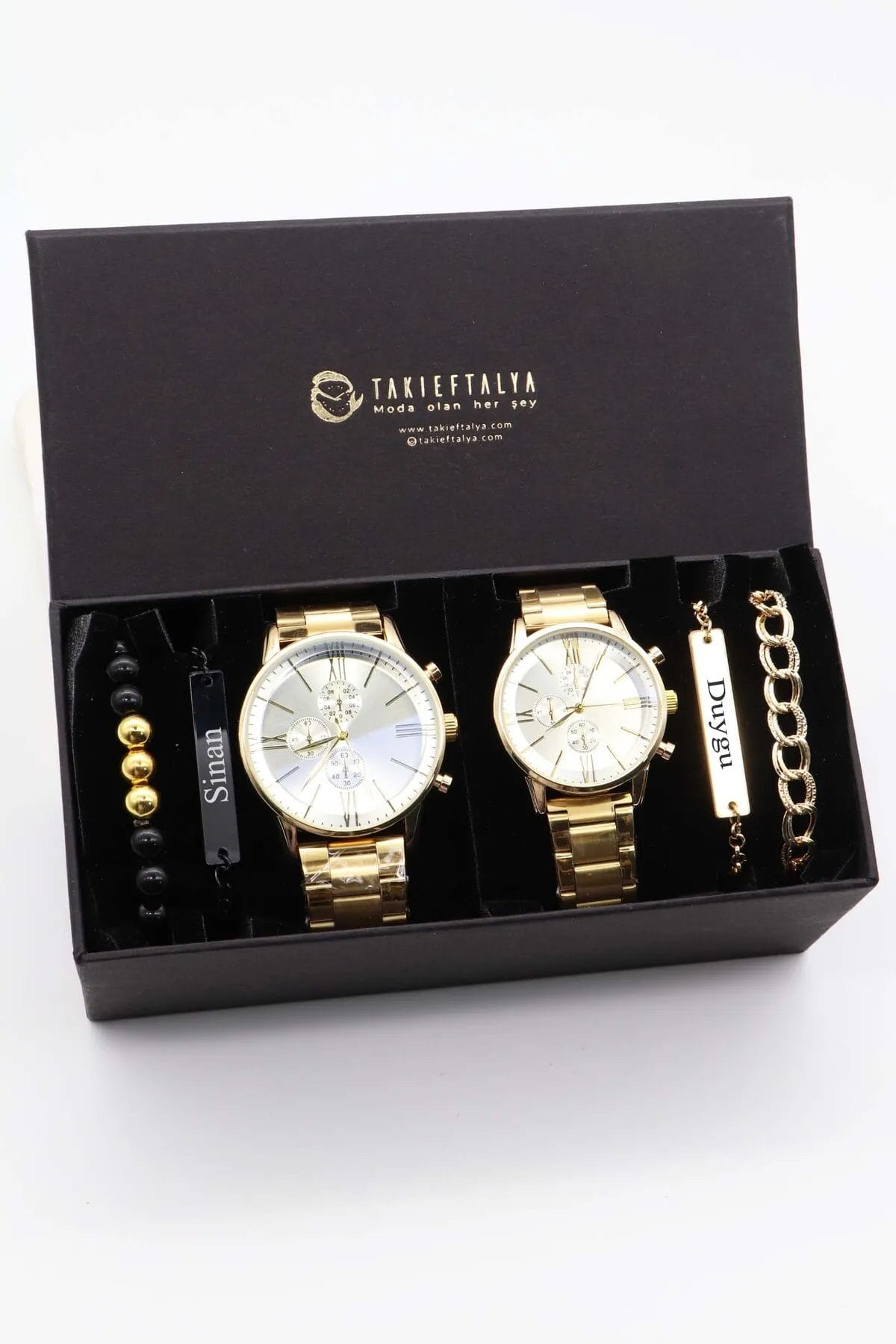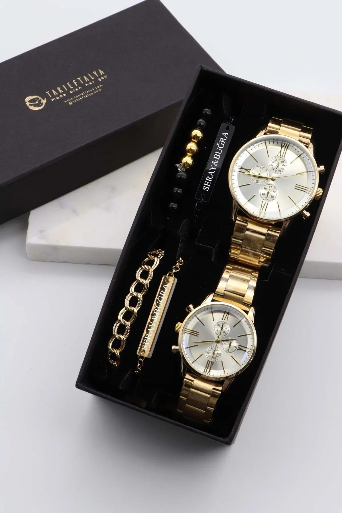 ساعة للزوجين باللون الذهبي مع زوجين من الأساور – مجموعة العشاق – من نورثواتش