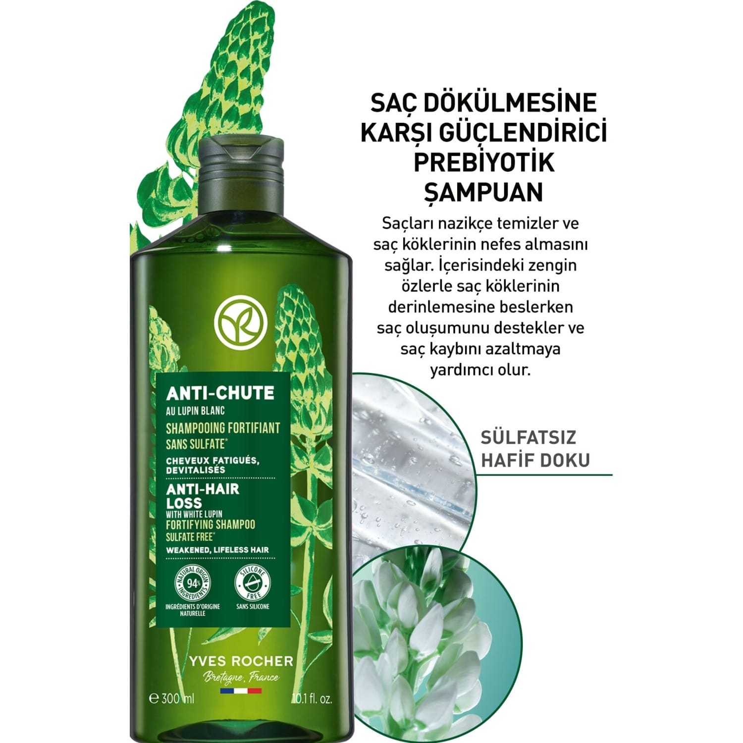 شامبو المضاد لتساقط الشعر وتقوية البريبايوتك – خالي من الكبريتات ونباتي – 300 مل من إيف روشيه
