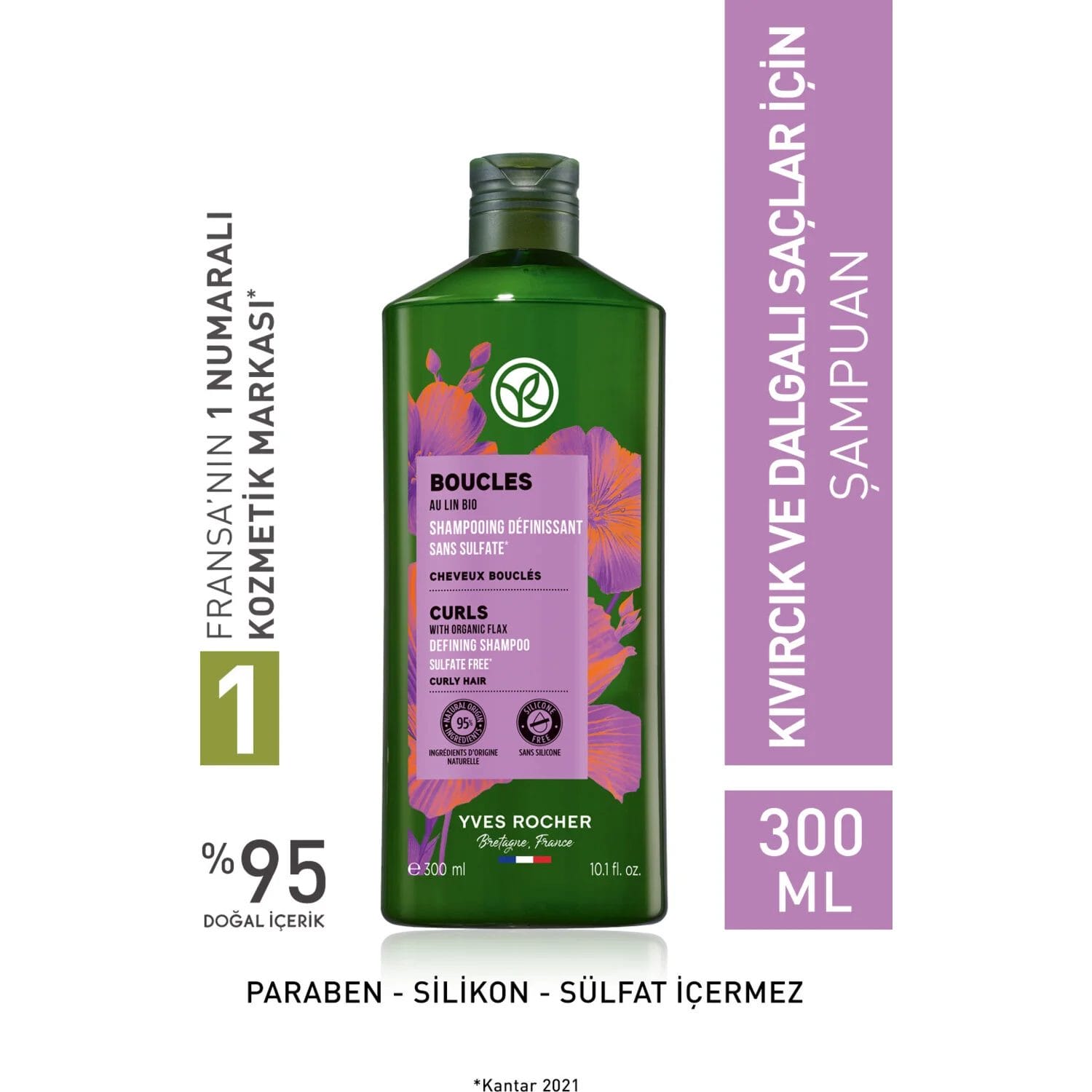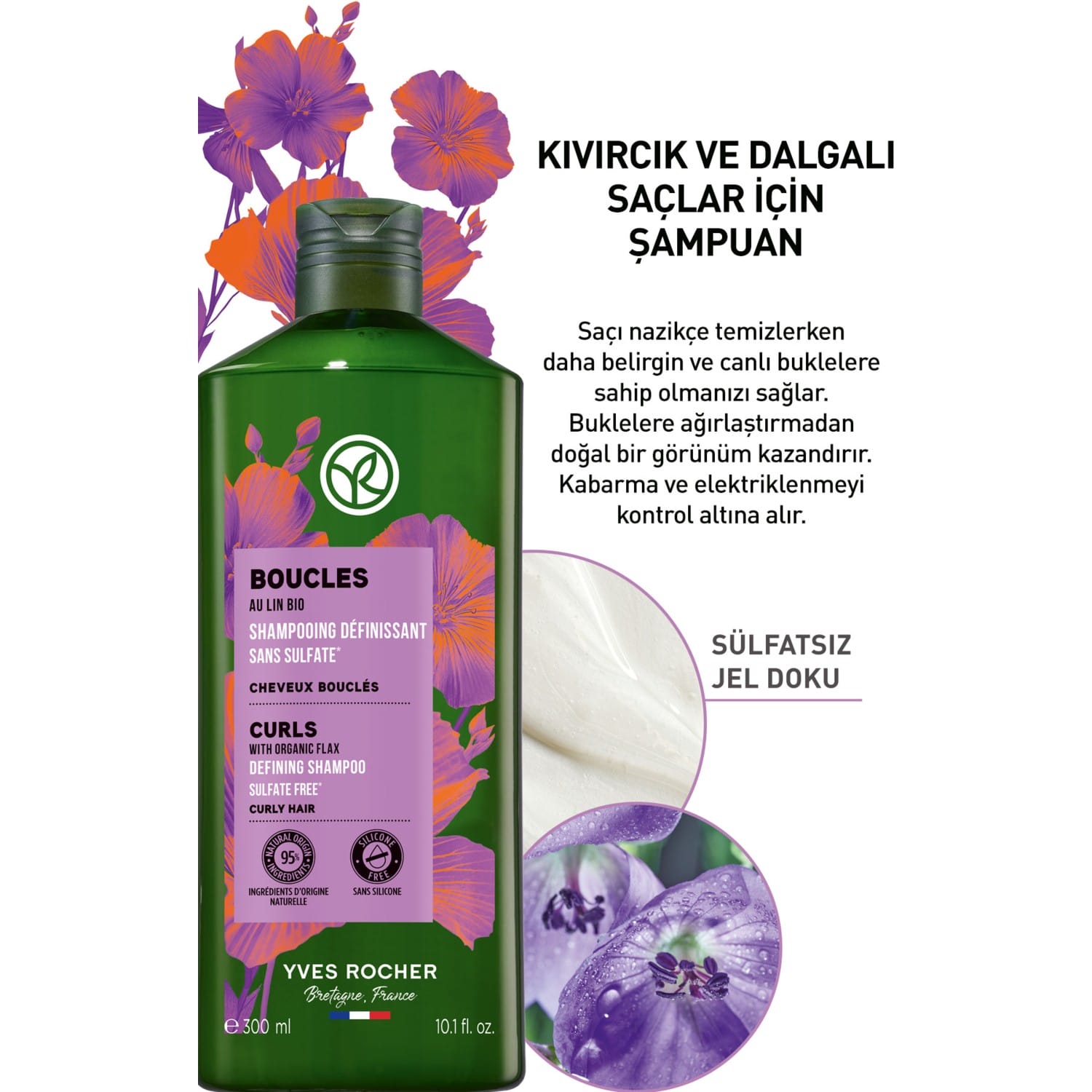 شامبو معزز لتجعيد الشعر للشعر المجعد والمموج – نباتي وخالي من الكبريتات-300 مل من إيف روشيه