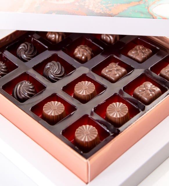 شوكولاتة لذيذة ومنقوشة بالحليب في صندوق مربع 155 جرام
