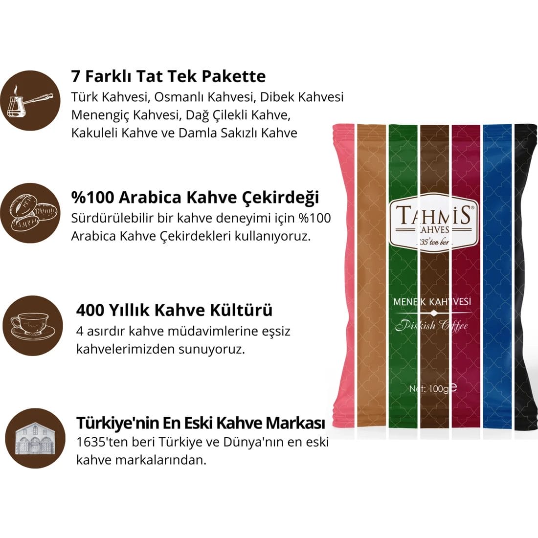 قهوة تركي من تحميص 7 قطع 100 جرام (المستكة-فراولة-مننجيتش-عثماني-دبيك-هيل-تركي)