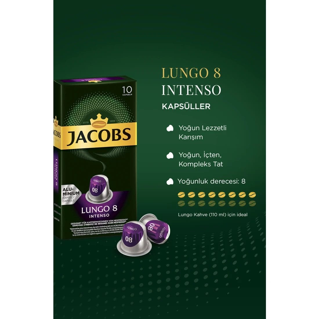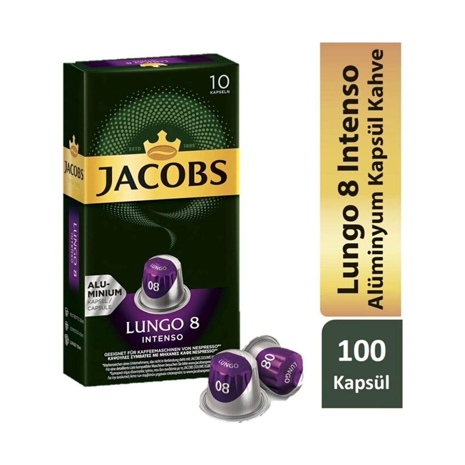 قهوة لونجو المميزة كبسولات إسبرسو 8 انتينسو – من جاكوبس 10 × 10 عبوات (100)