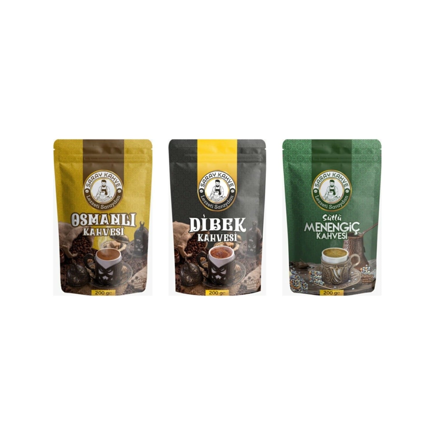 مجموعة قهوة سراي العثمانية (قهوة ديبك, قهوة عثمانية, قهوة الحبة الخضراء) 3*200 جرام