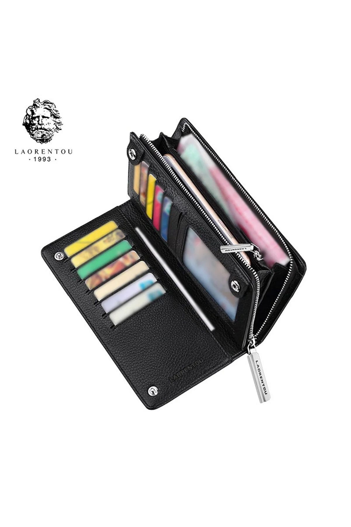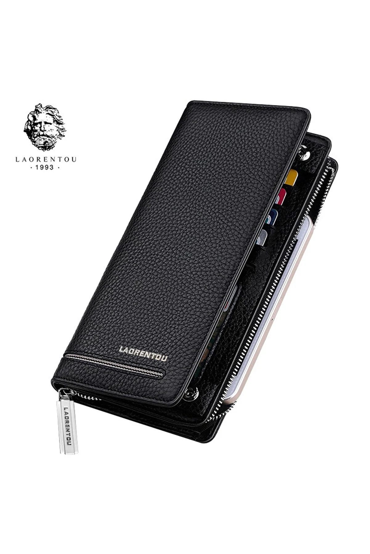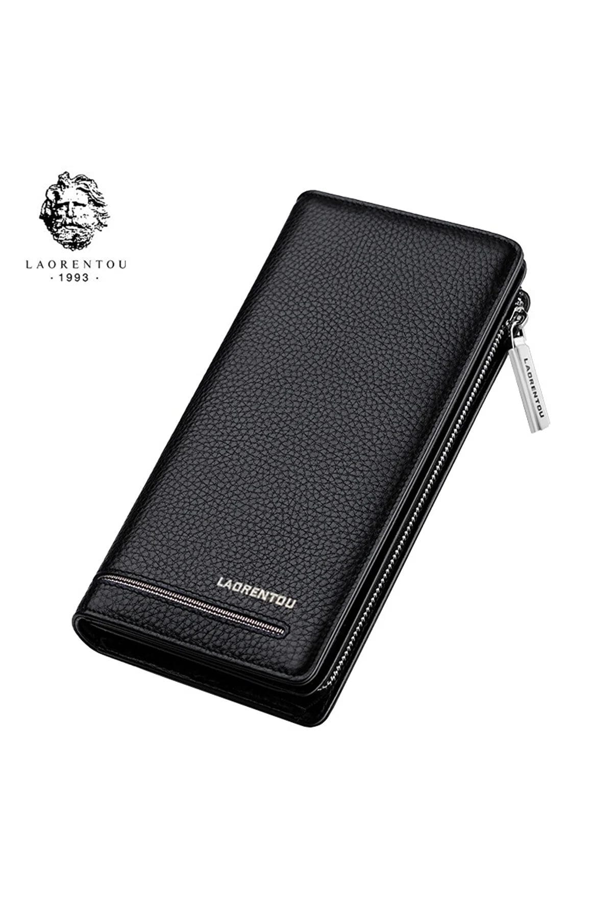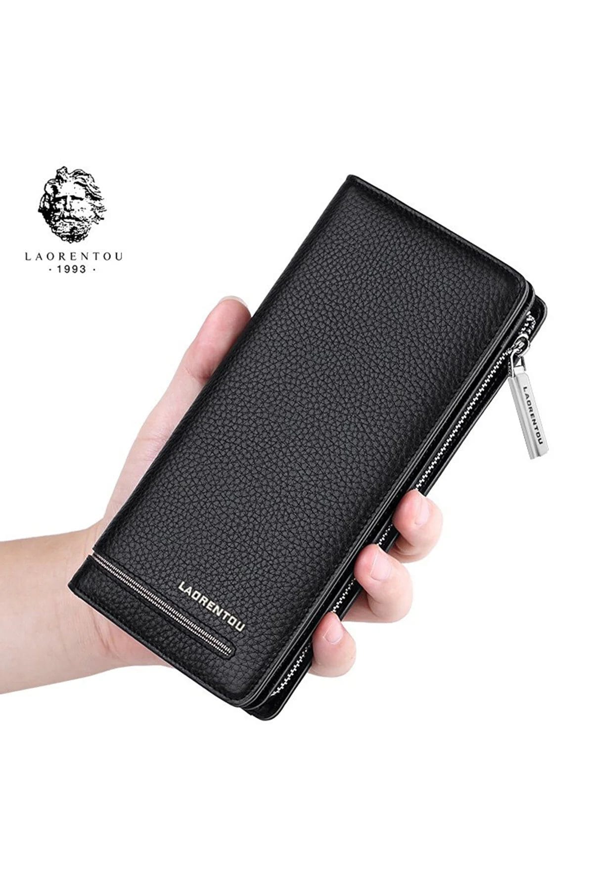 محفظة رجالية طويلة مصنوعة من الجلد الطبيعي مع سحاب من لاورينتو