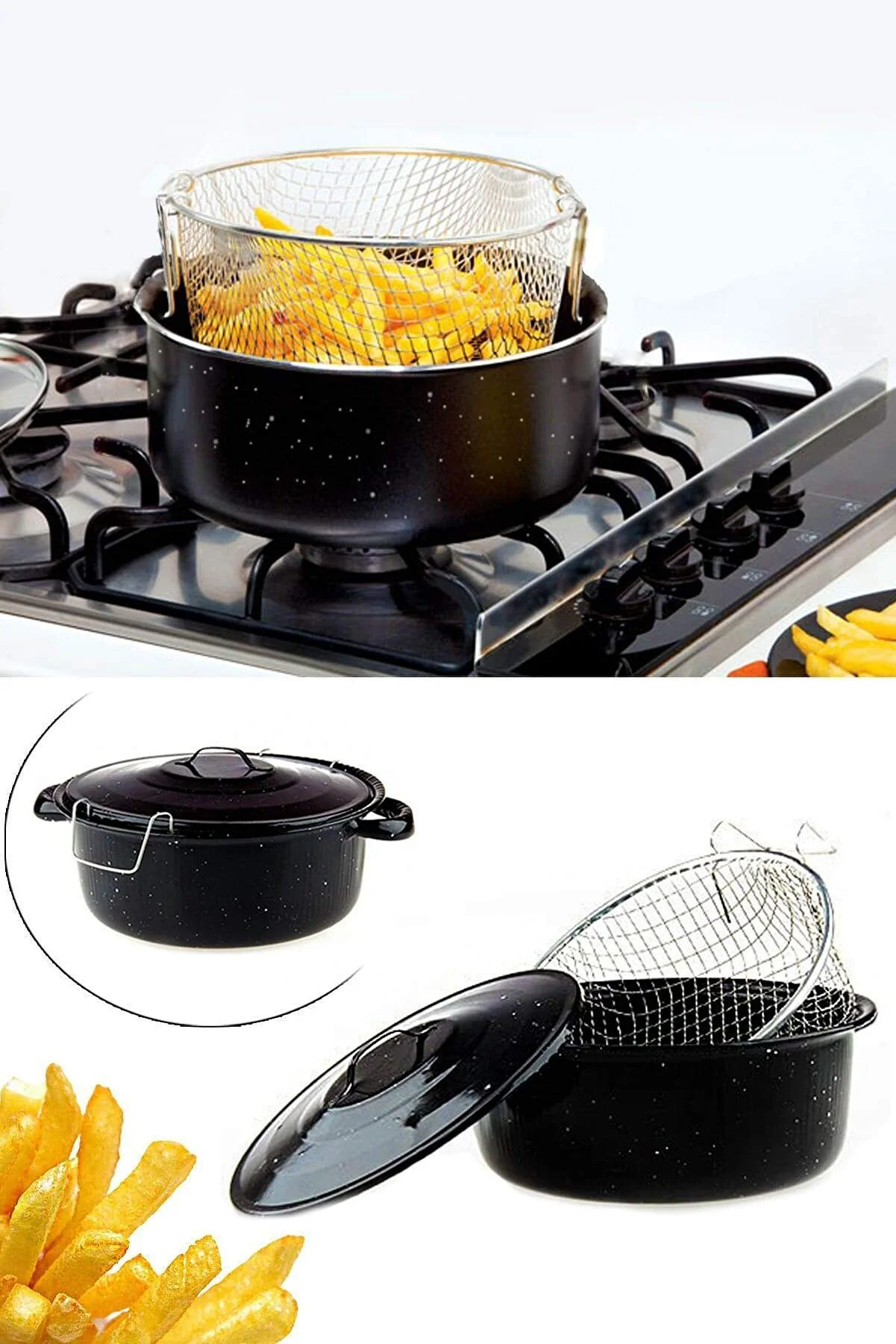 Home » المتجر » مقلاة مطلية بالمينا غير لاصقة مقاومة للحريق مع مصفاة من أرسيمو إيسان