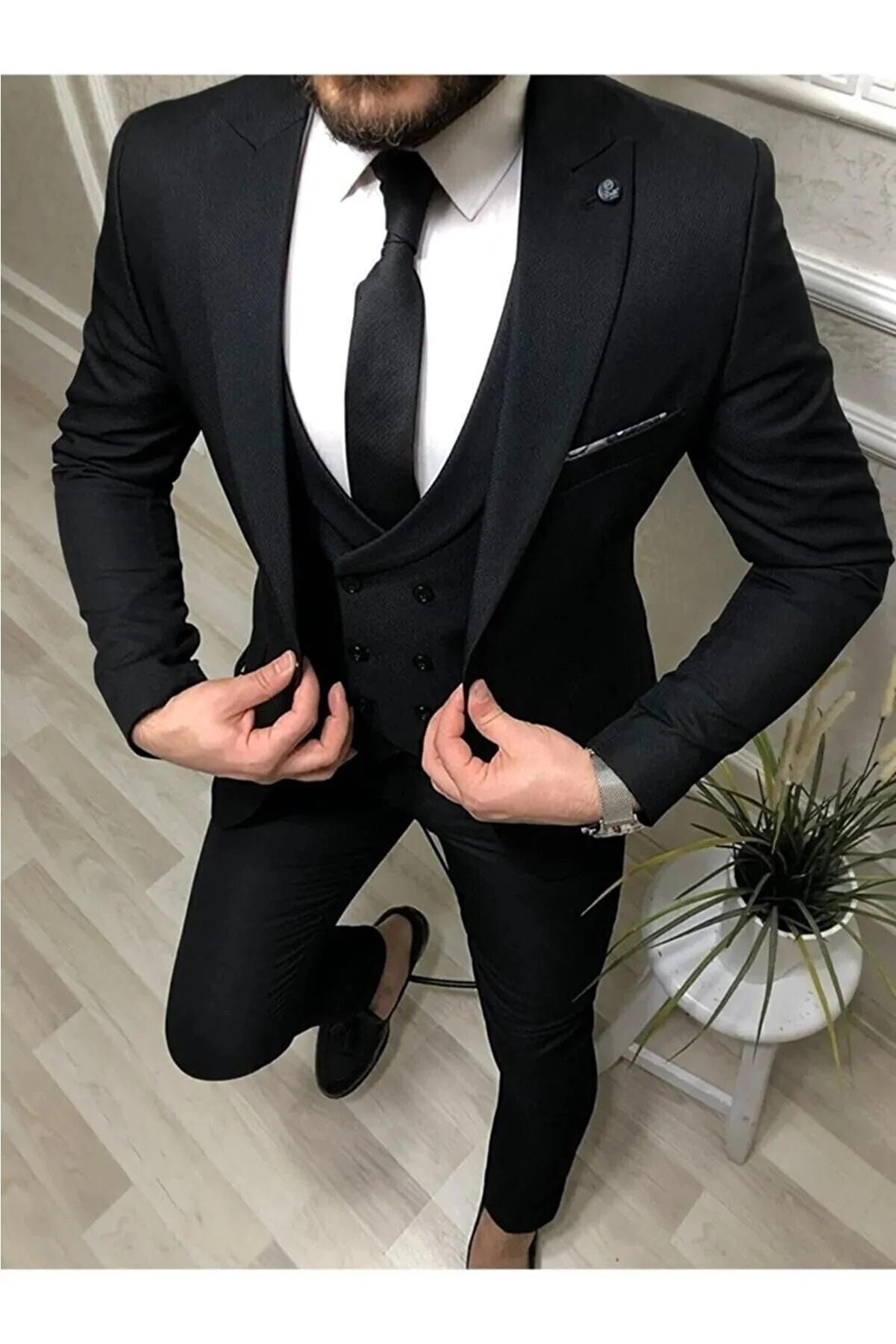 بدلة صدرية ضيقة للرجال (ياقة مزخرفة وهدية ربطة عنق) من إم كيه بي