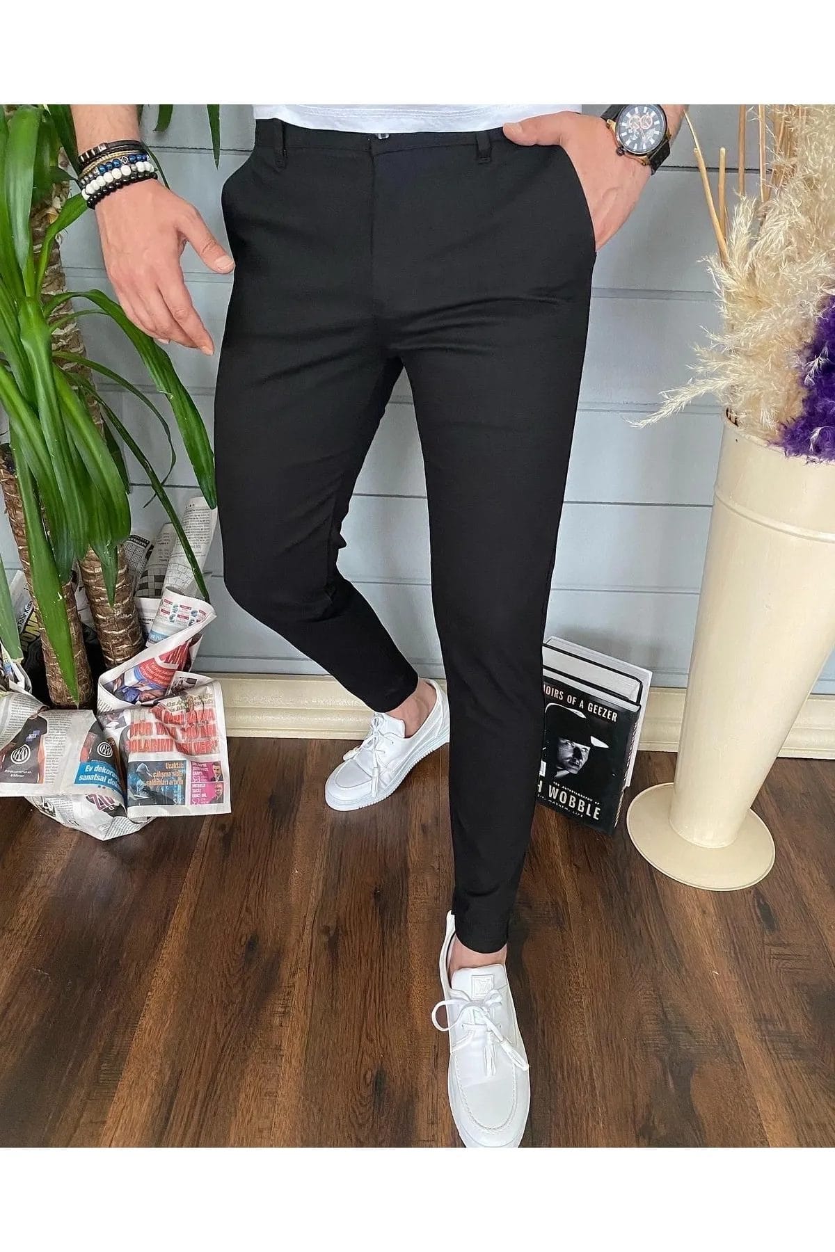 بنطال رجالي مصنوع من قماش الكتان ذو قصة ضيقة باللون الأسود من ماركة سيرخوبن