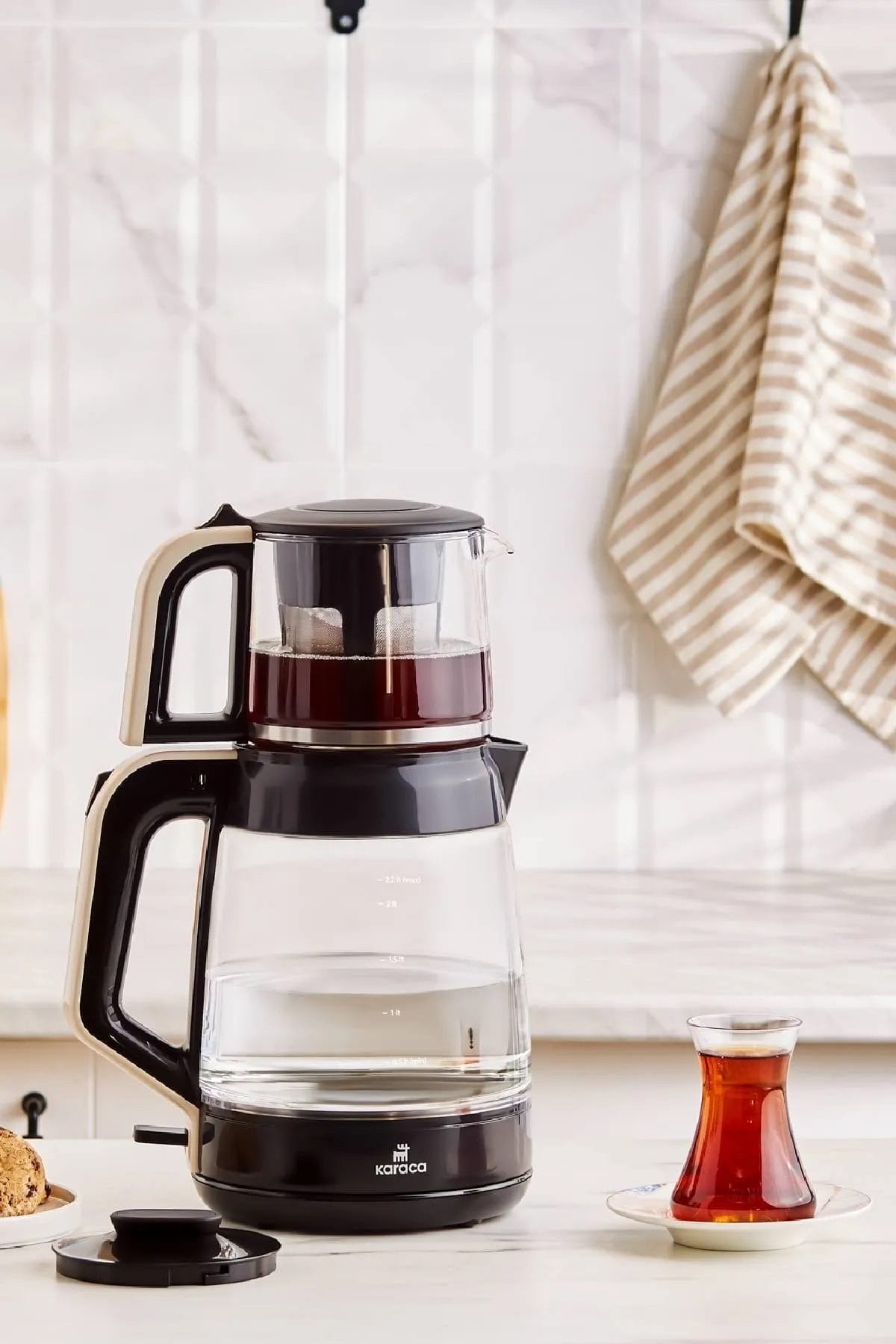 جهاز تسخين الماء وصانع الشاي من الزجاج، من كاراجا جلاس تي إكس إل 2×1 يلفت الانتباه بتصميمه الحديث مما يوفر للمستخدم حلاً عمليًا وأنيقًا