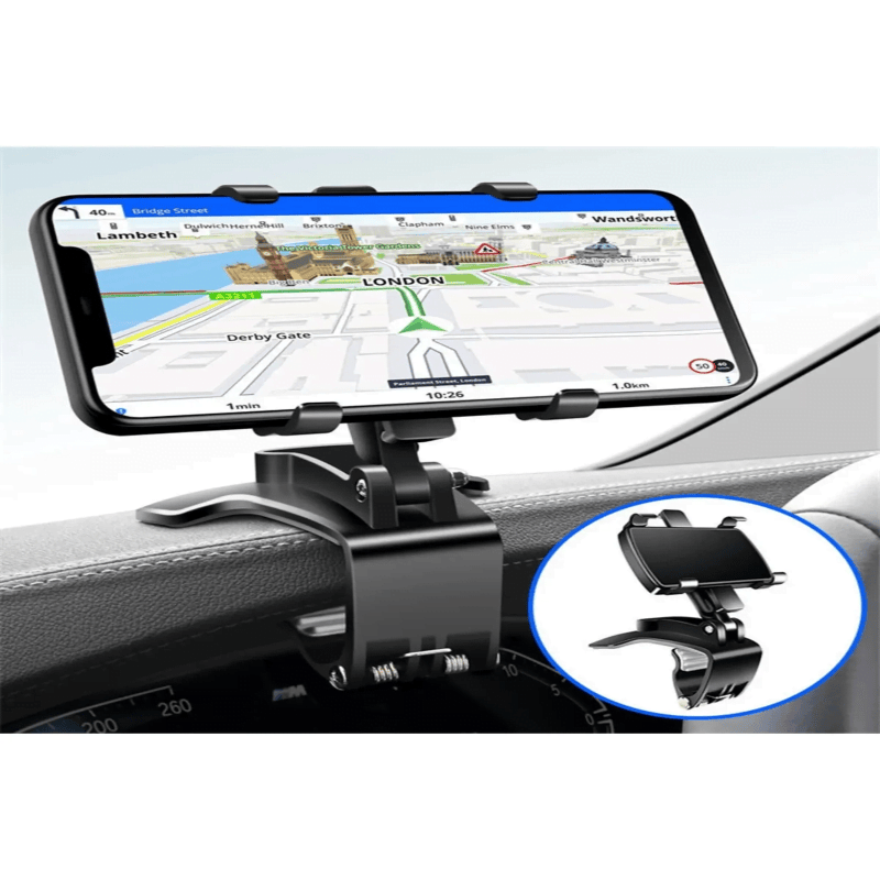 الآن حان الوقت لتجربة حامل الهاتف ذو المشبك الذي يتم تثبيته أمام عجلة القيادة والذي لا يعيق رؤيةك. يضمن الإسفنج الموضوع في الجزء الذي يلامس هاتفك الخليوي حمايته من الخدوش. يتيح لك هذا الحامل الاستخدام المتعدد الأغراض، حيث يمكن تثبيته على أعلى لوحة القيادة، أو على لوحة العرض، أو على مرآة السيارة، أو على مكتب المكتب.