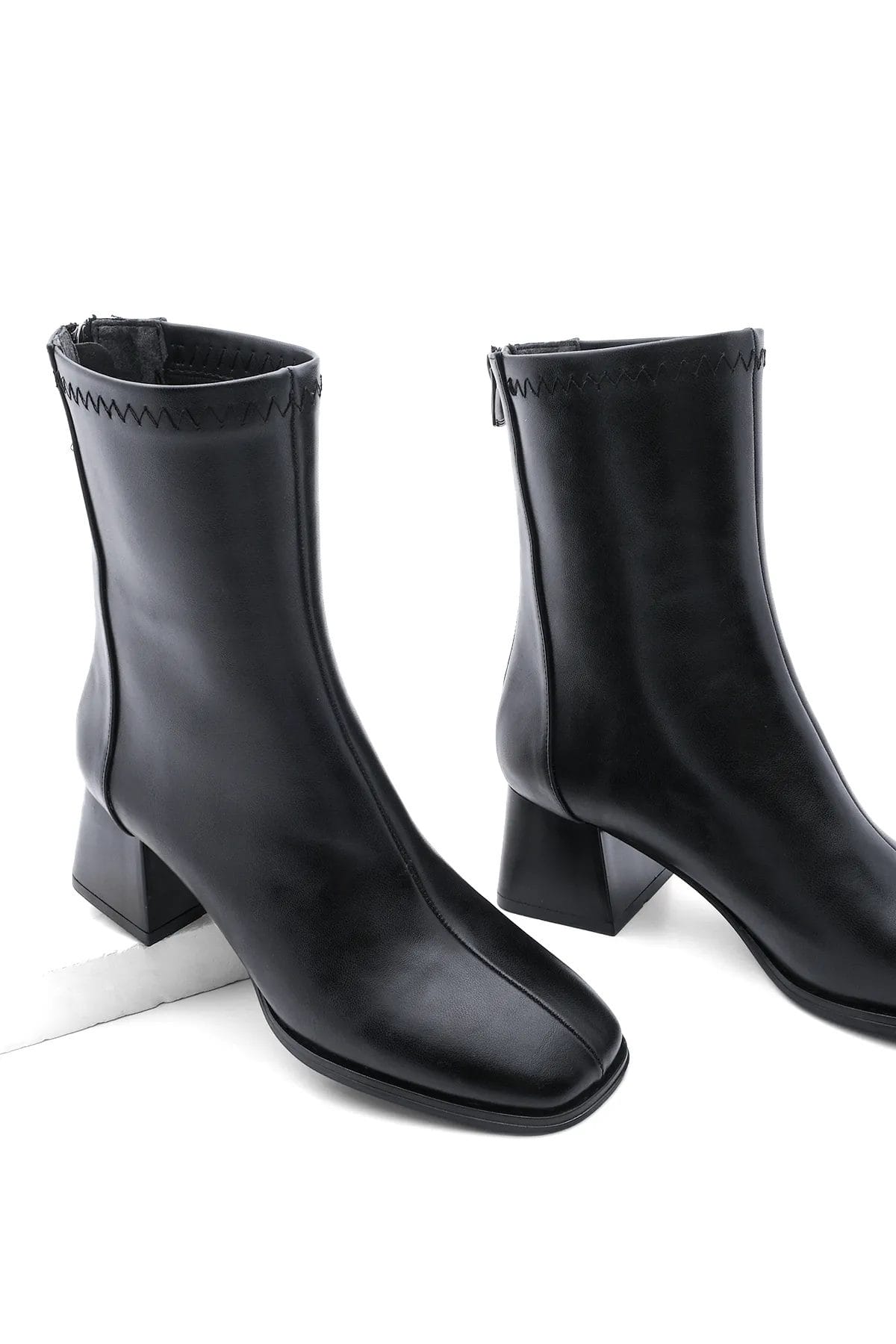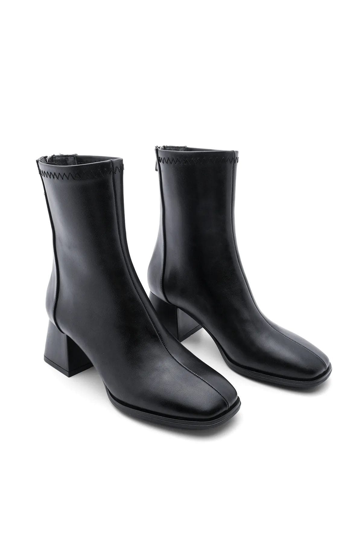 حذاء نسائي بكعب رفيع ومقدمة حادة وسحاب خلفي باللون الأسود من مارجن