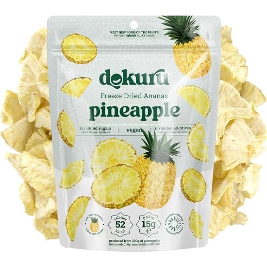 – مكونات طبيعية 100%: مصنوعة من أناناس طبيعي طازج ومجفف بالتجميد للحفاظ على نكهته الطازجة والمميزة، دون أي مواد حافظة أو إضافات صناعية.