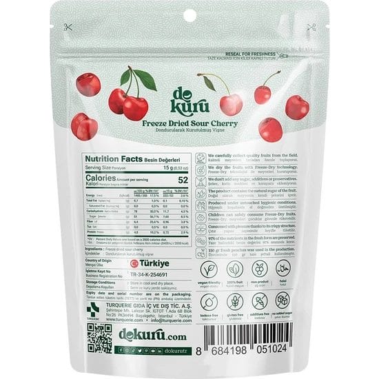 – صحي وطبيعي: مصنوع من الكرز الحامض الطبيعي المجفف بالتجميد دون أي مواد حافظة أو نكهات صناعية.