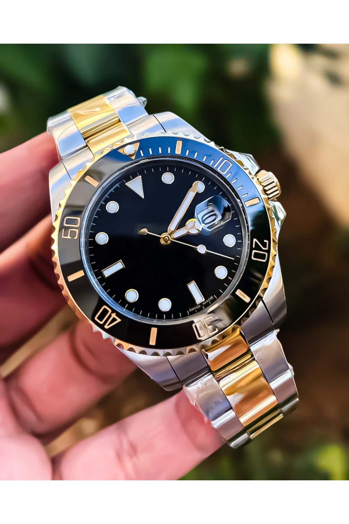 ساعة يد رجالية بحزام فولاذي بالون الفضي وذهبي من تولبار
