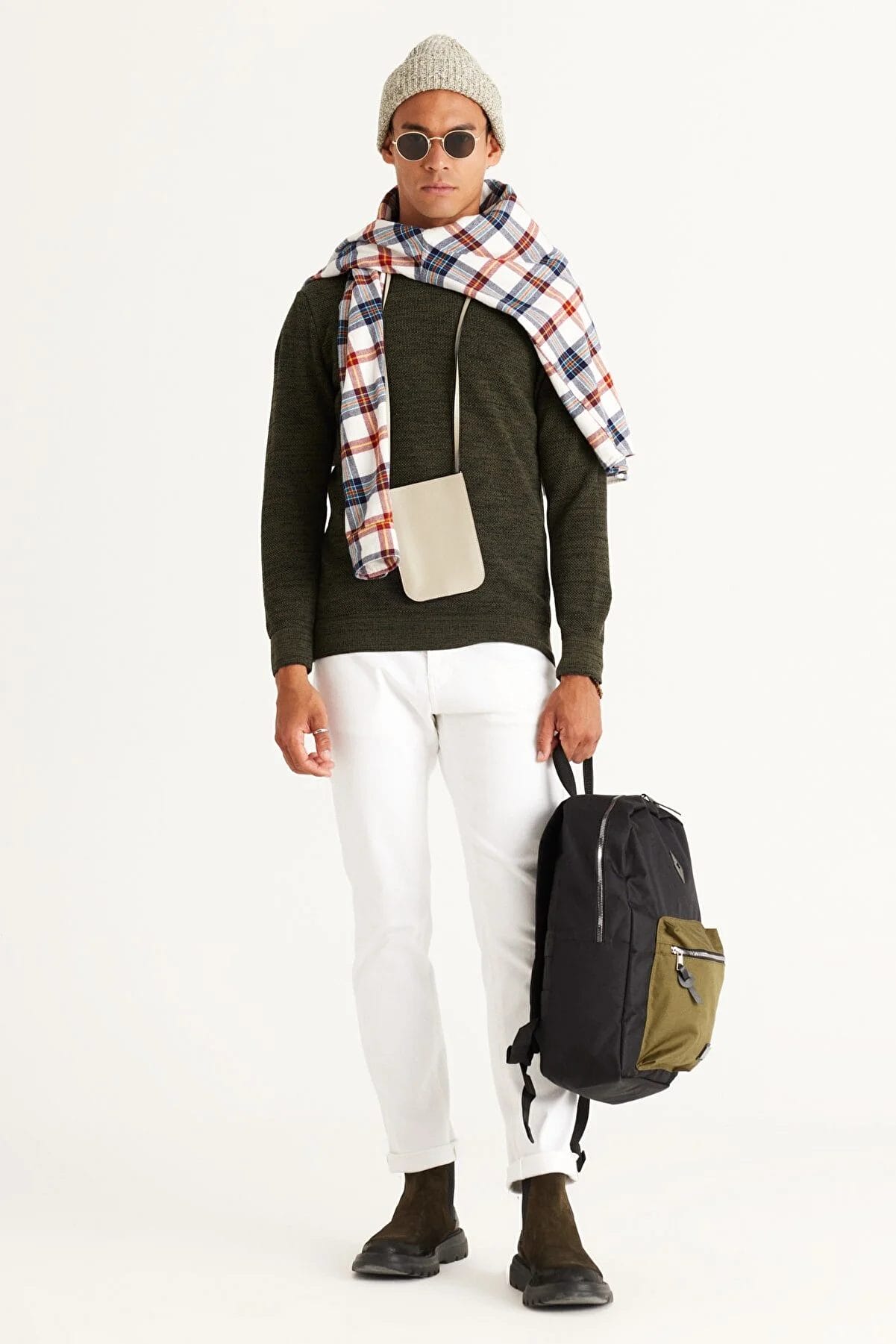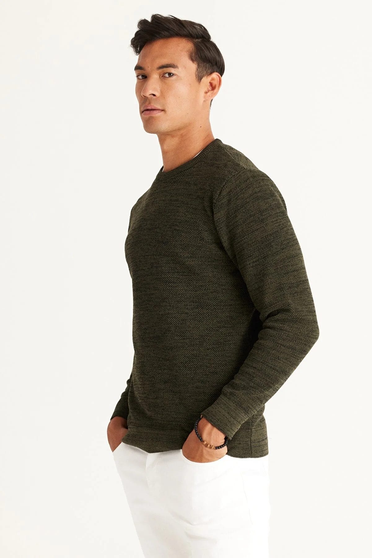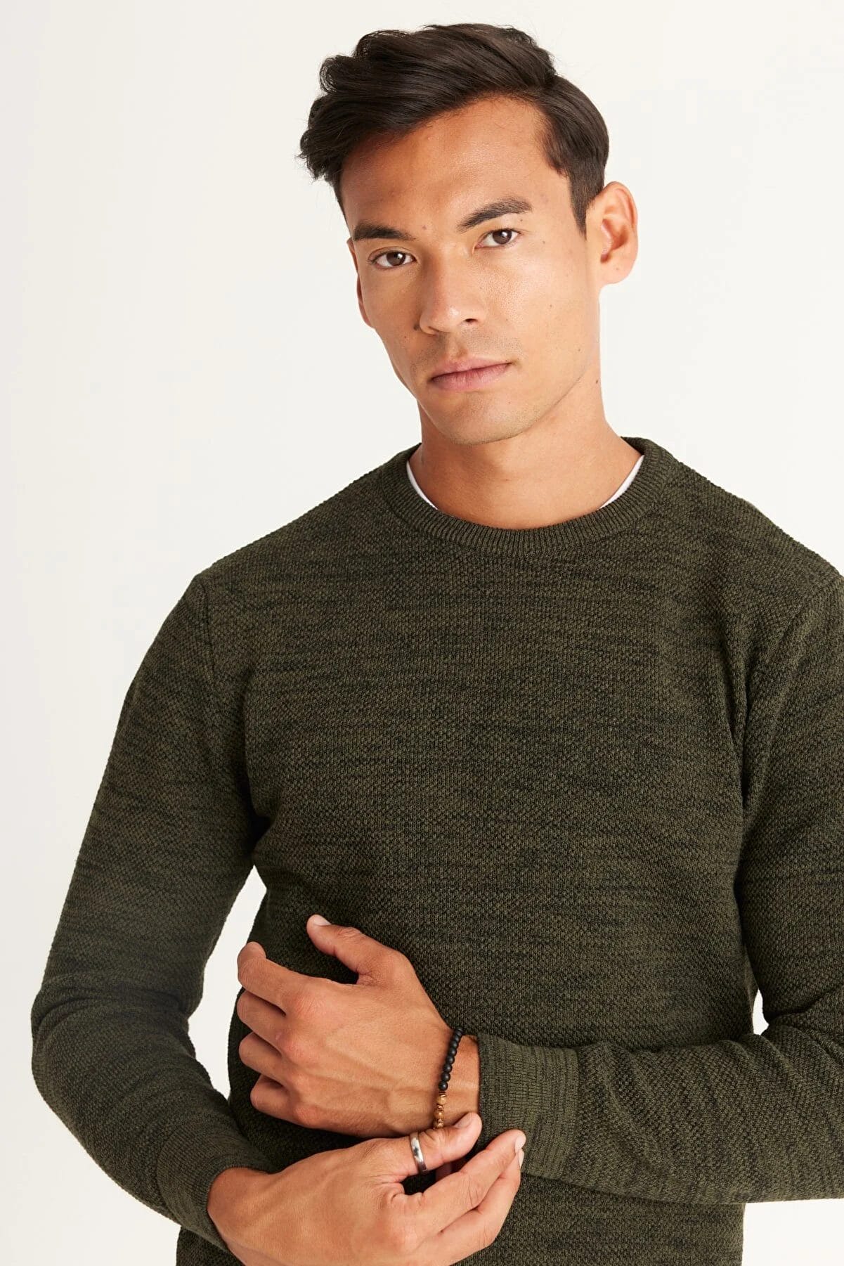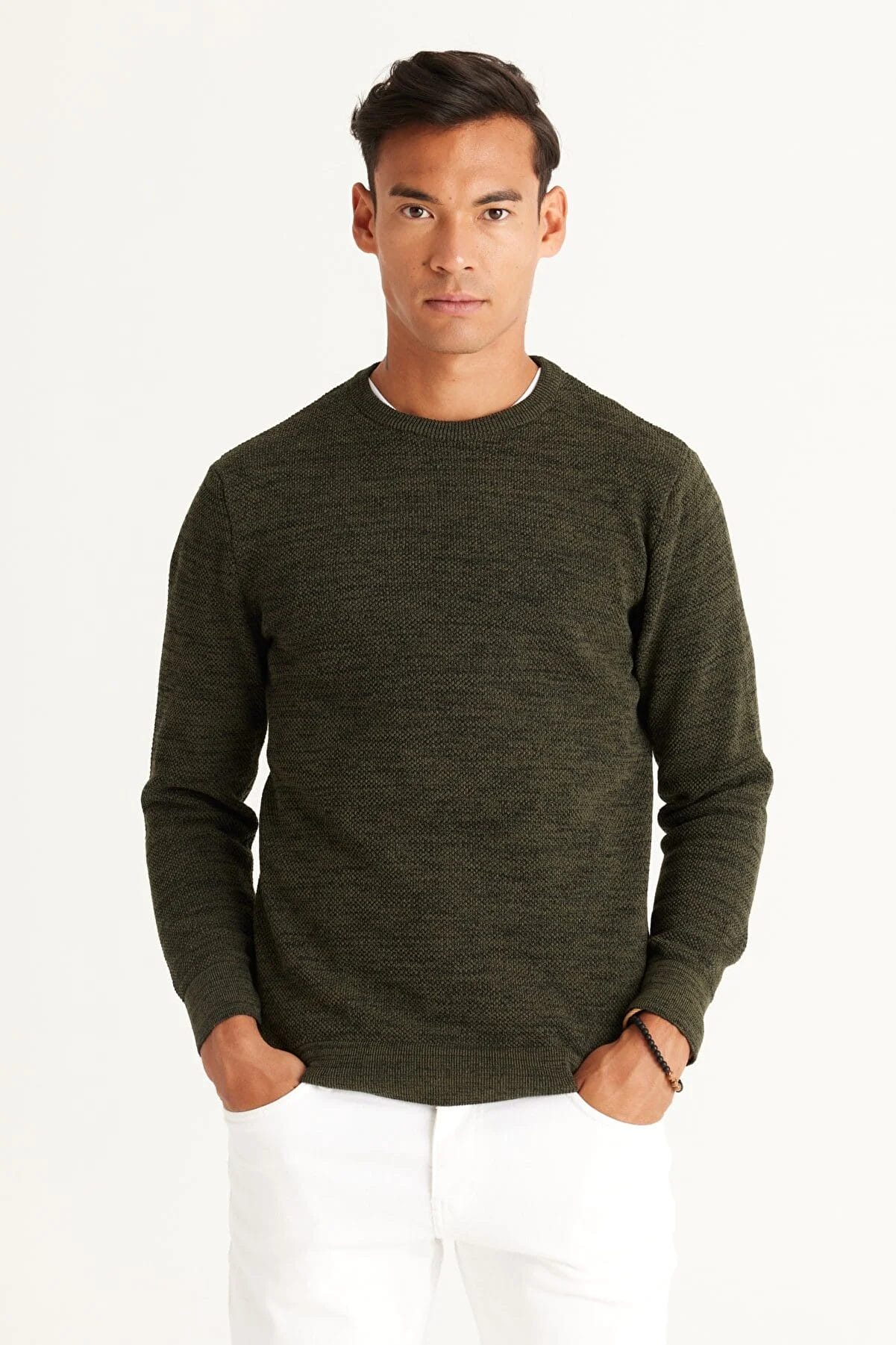 سترة رجالية ذات قصة عادية ورقبة دائرية منقوشة بالون الكاكي والأسود من ايه سي اند كو / التينيو كلاسك