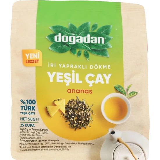 اكتشف نكهة وفوائد شاي أخضر بالأناناس من ماركة دوغادان التركية – 50 جرام