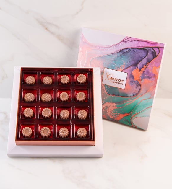 شوكولاتة منقوشة ومخروطية وزهرية في صندوق مربع منقوش 165 جم