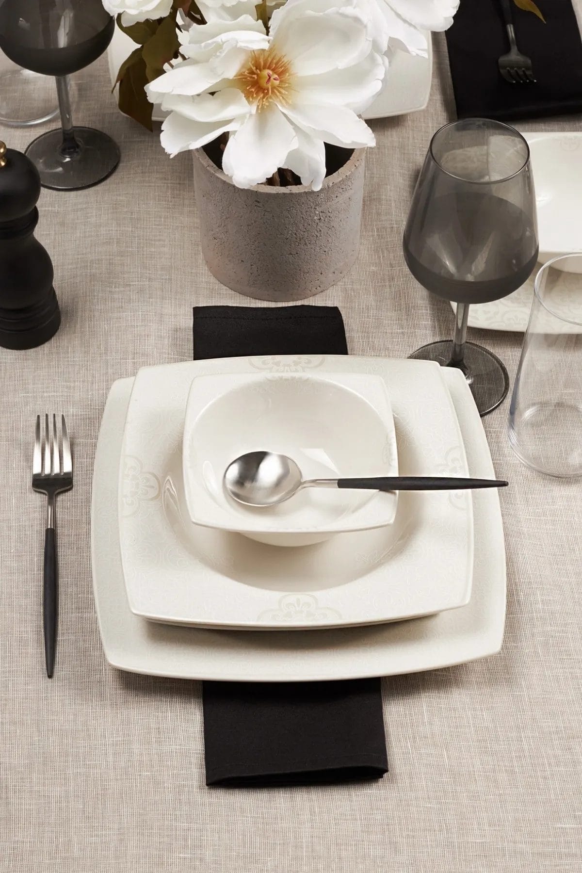 تحتوي المجموعة على 6 أطقم من كل من: صحون الخدمة الكبيرة، وصحون الطعام العميقة، وصحون المعكرونة، وأطباق الحساء، مما يجعلها مثالية لتقديم وجباتك اليومية والخاصة.