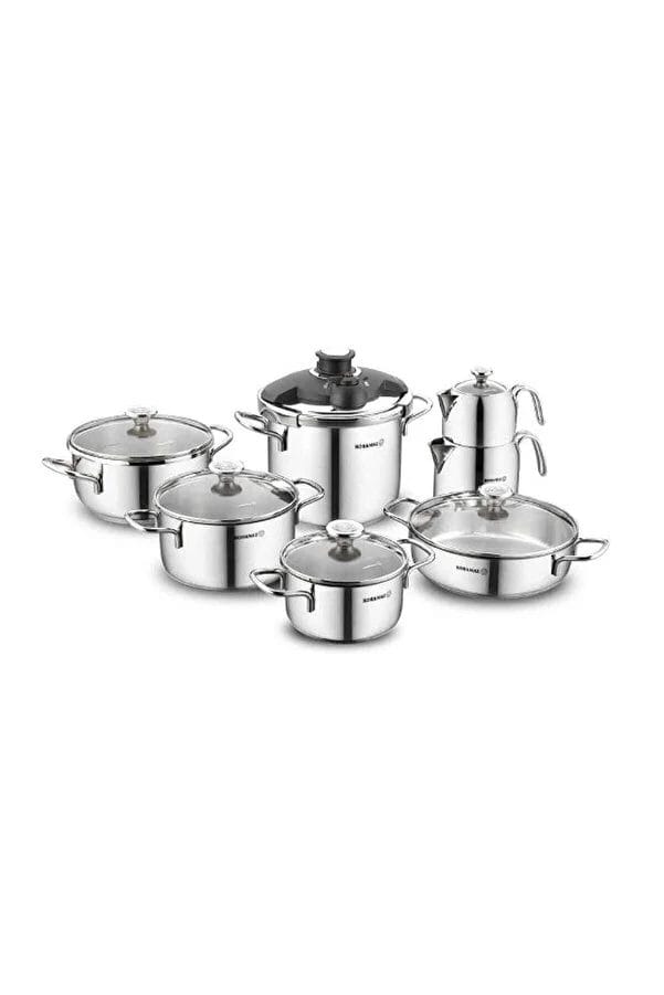 طقم قدور فولاذي مكون من 14 قطعة من ماركة كوركماز علياء