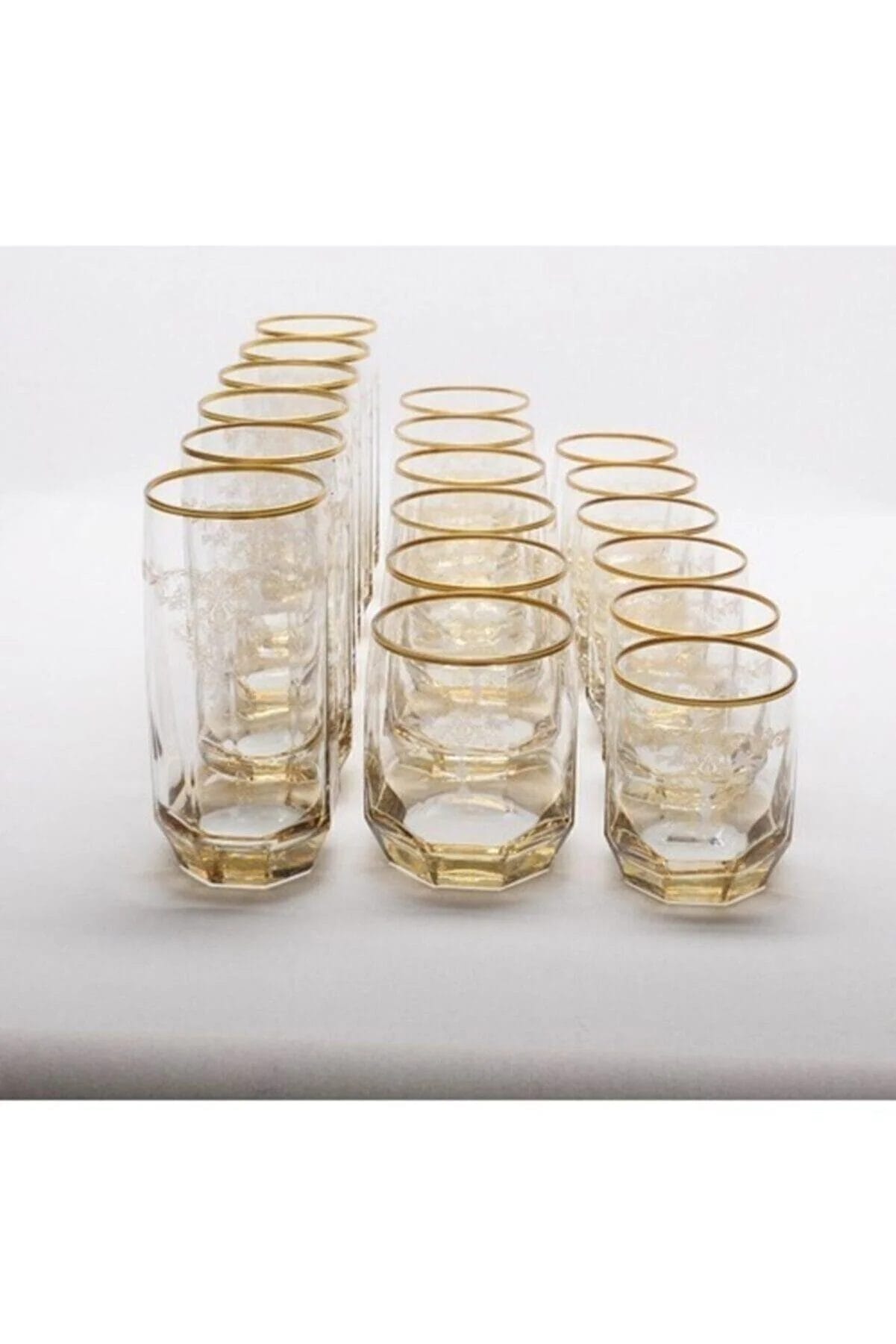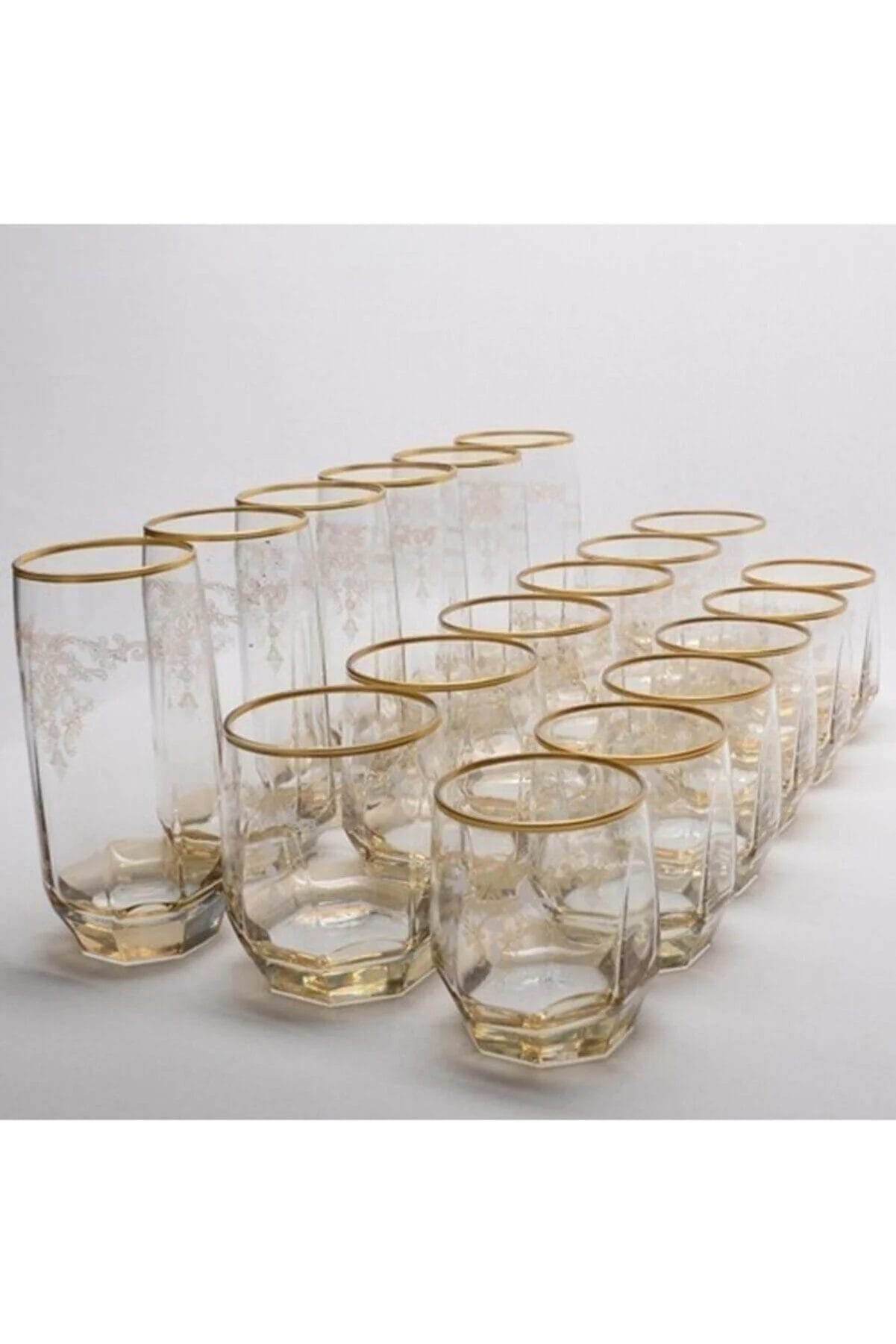 طقم كاسات زجاجية فاخرةمكون من 18 قطعة (مذهب – لامع – مزين) من تريند موتفكلار لاف