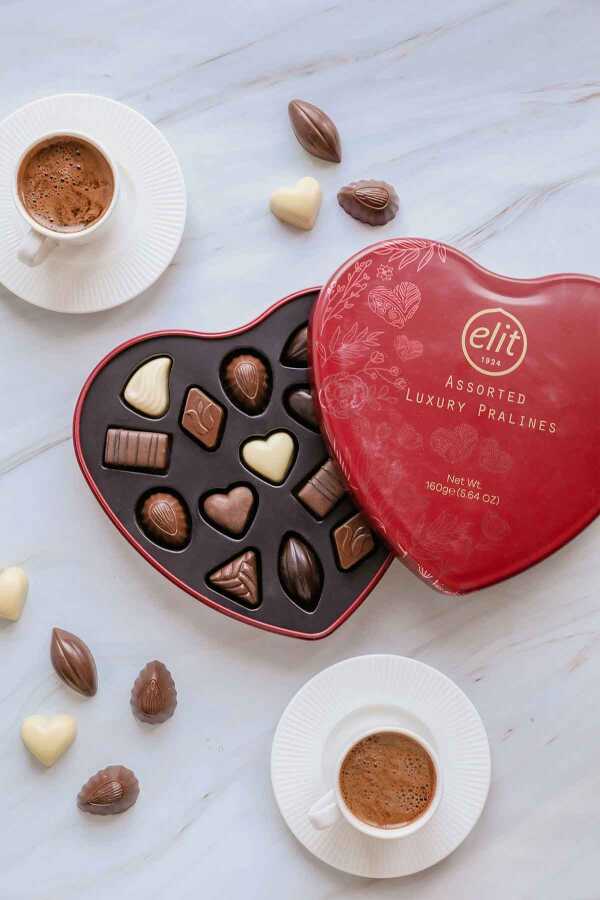 تمتع بتجربة فريدة مع مجموعة الشوكولاتة الفاخرة “Luxury Pralines”، المقدمة في علبة فاخرة بشكل قلب معدني بلون أحمر. تحتوي هذه المجموعة الرائعة على تسعة أنواع مختلفة من الشوكولاتة المحشوة، مما يجعلها خيارًا رائعًا لأوقات الاحتفال بالمناسبات المميزة.
