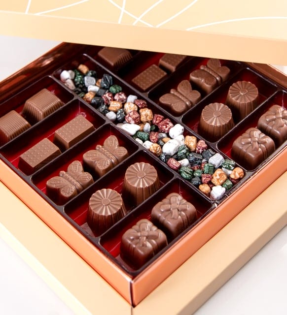 دلل نفسك بفرحة الإهداء مع صندوق هدايا شوكو ديلايت! يشمل هذا المزيج الفاخر: