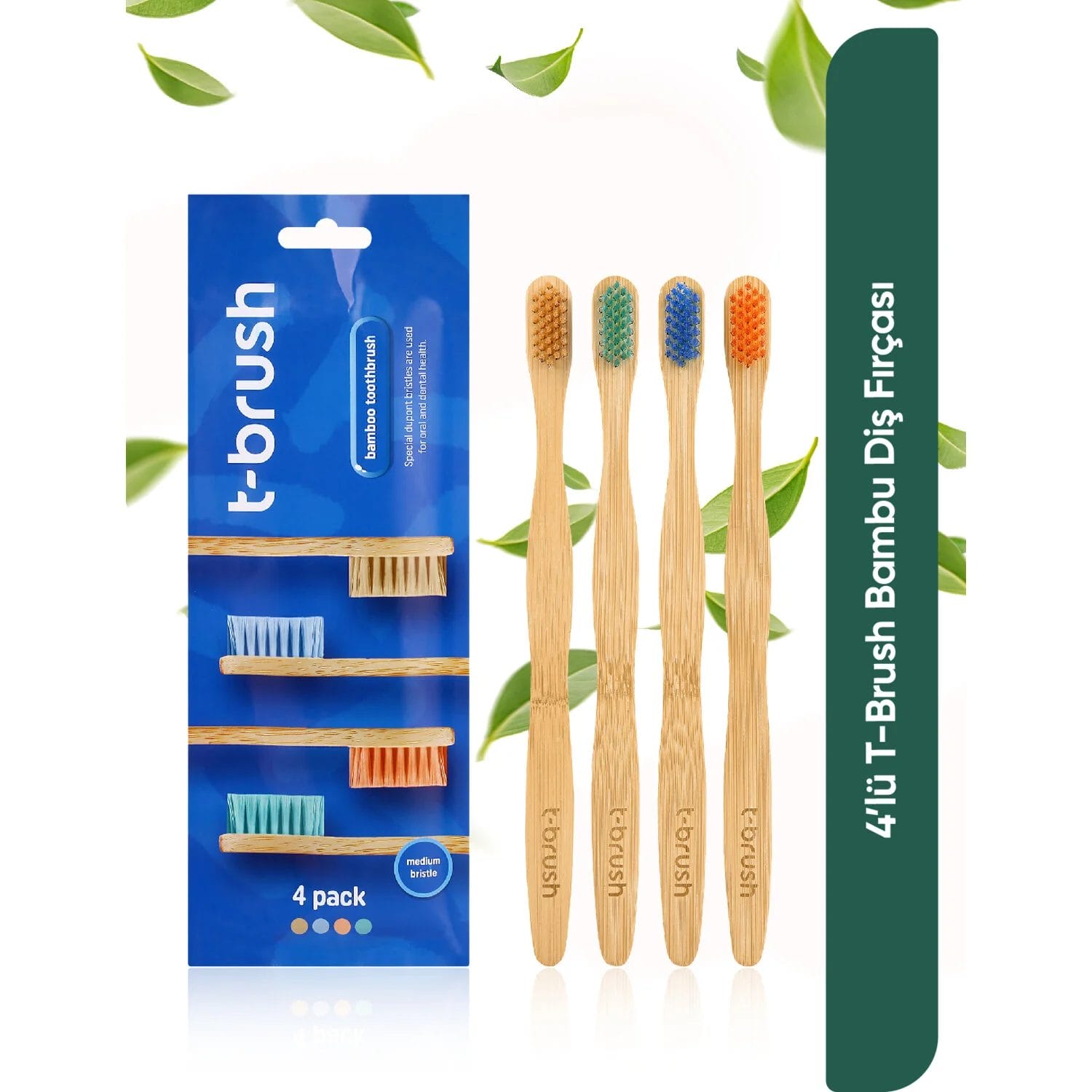 فرشاة أسنان نباتية من الخيزران الطبيعي متوسطة الصلابة – خالية من البلاستيك عدد 4