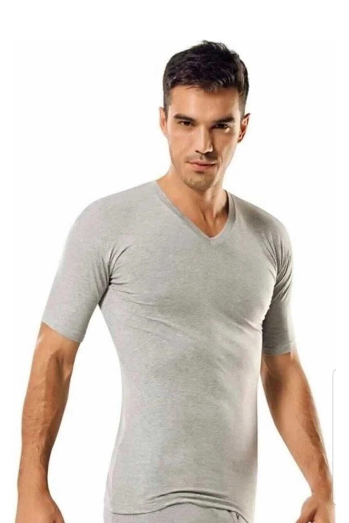 قميص داخلي رجالي باللون الرمادي من القطن برقبة على شكل حرف V مكون من 3 قطع من توتكو