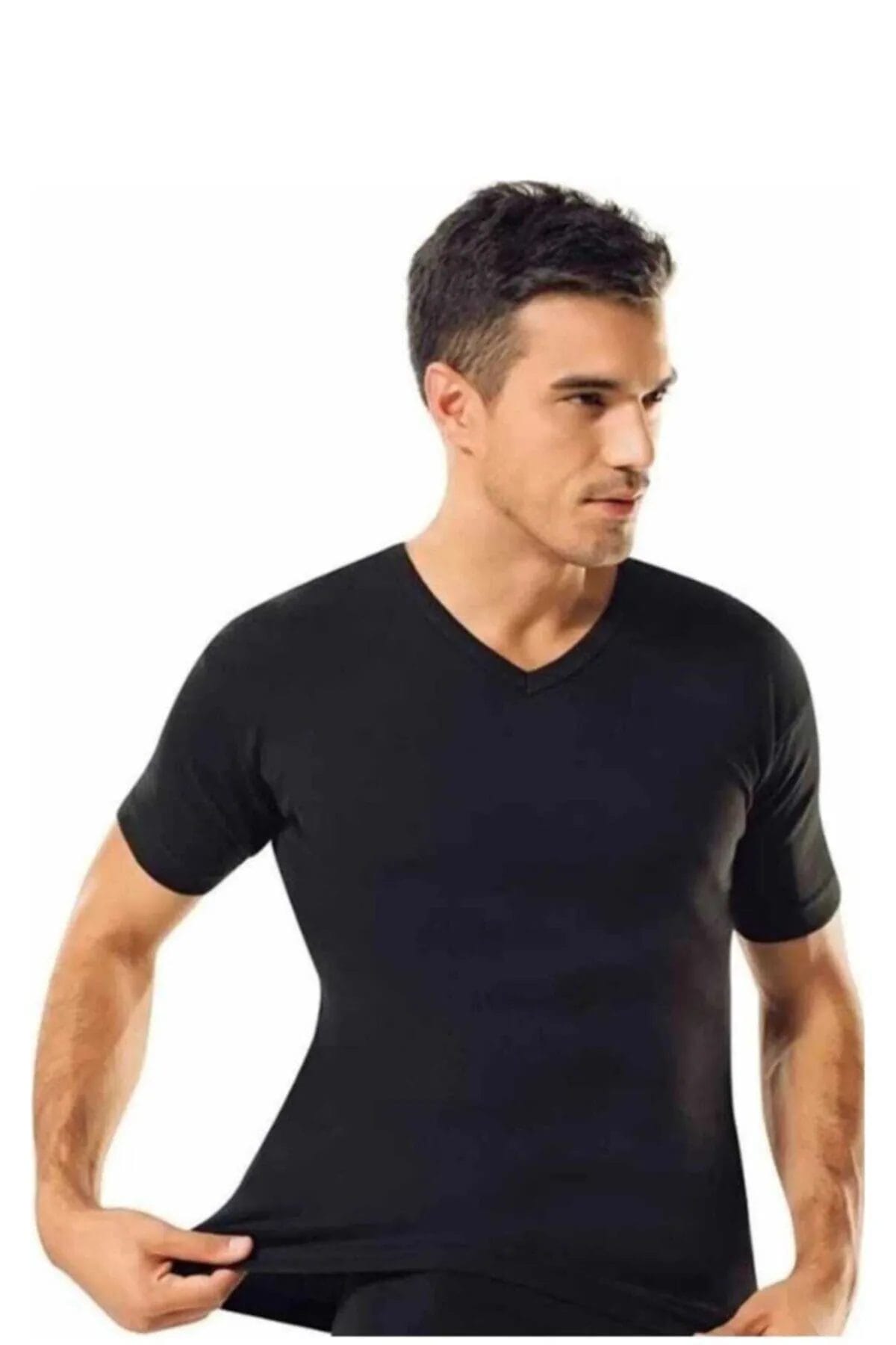قميص داخلي مضلع أسود برقبة على شكل حرف V مكون من 3 قطع من توتكو