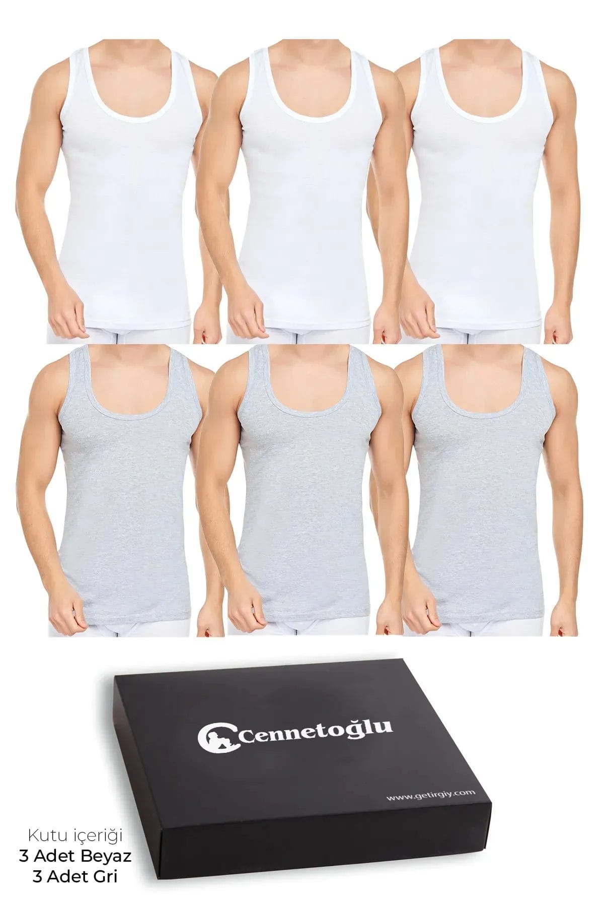 قميص داخلي أبيض للرجال من جنة اوغلو 6 قطع قطني 100%