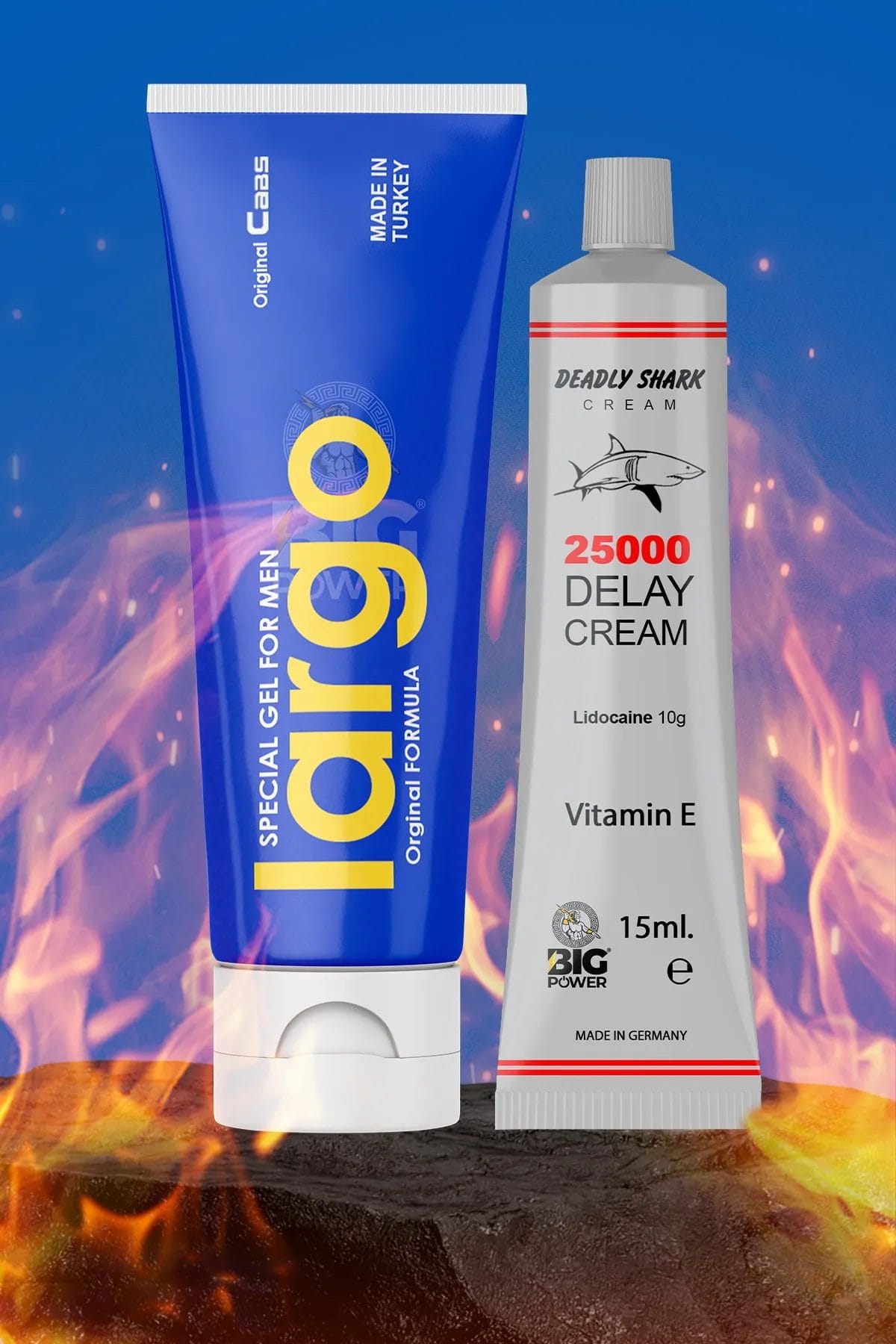 كريم لارجو لتضخيم القضيب 50 مل + كريم القرش للتأخير 15 مل من بيغ باور