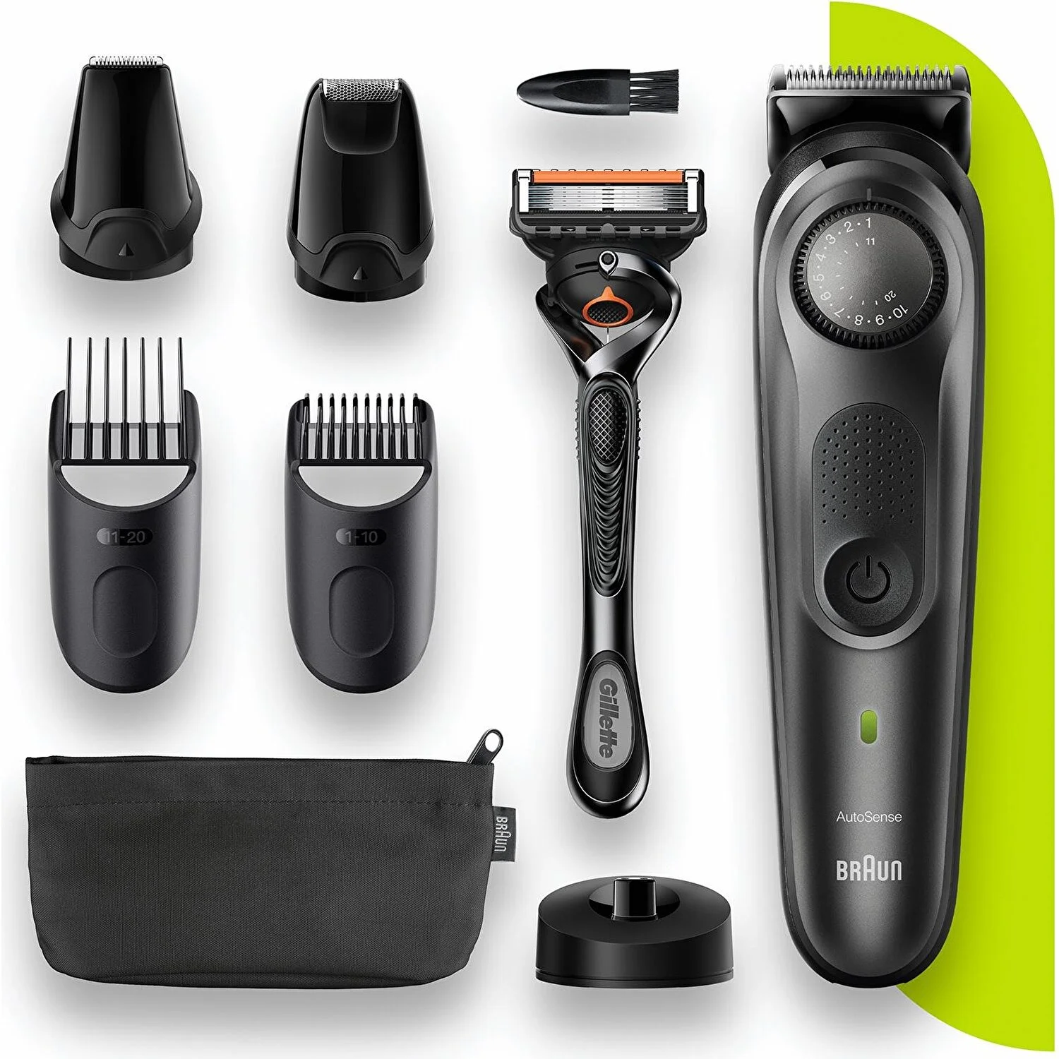 يمكنك الوصول إلى أسلوبك دون عناء مع ماكينة تشذيب اللحية ومقص الشعر للرجال من براون BT7. تم تصميم ماكينة تشذيب اللحية هذه بمساحة قص أكبر لالتقاط المزيد من الشعر وقصه مع كل تمريرة، مما يوفر حلاقة أكثر وضوحًا وأسرع وأكثر فعالية*. تتميز ماكينة تشذيب اللحية 7 بعجلة تعديل مع 39 إعدادًا للطول، وشفرات حادة مدى الحياة، وبطارية ليثيوم أيون. رأس ومشط تشذيب قابلان للغسل بالكامل. *مقارنة بأدوات التشذيب السابقة من براون