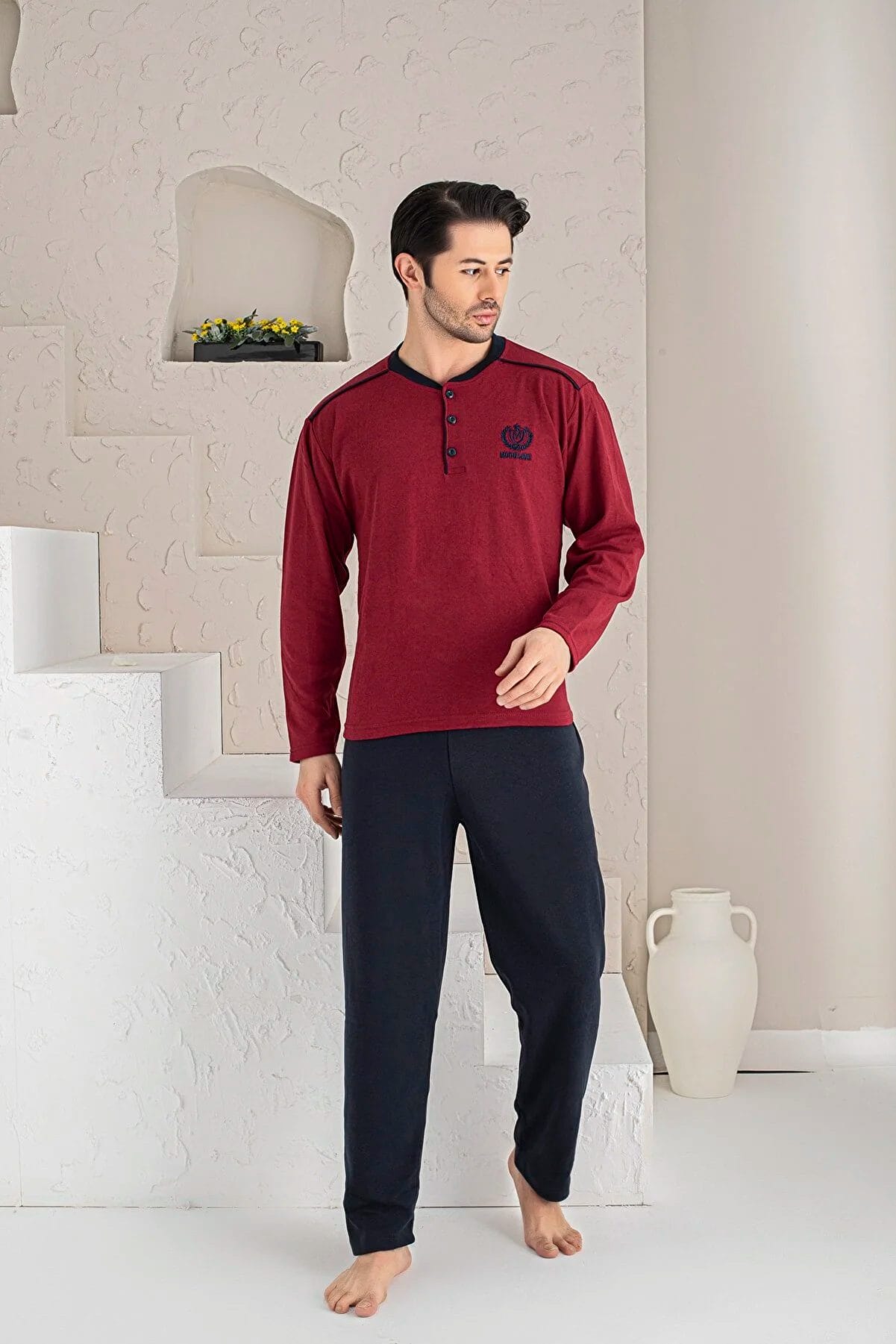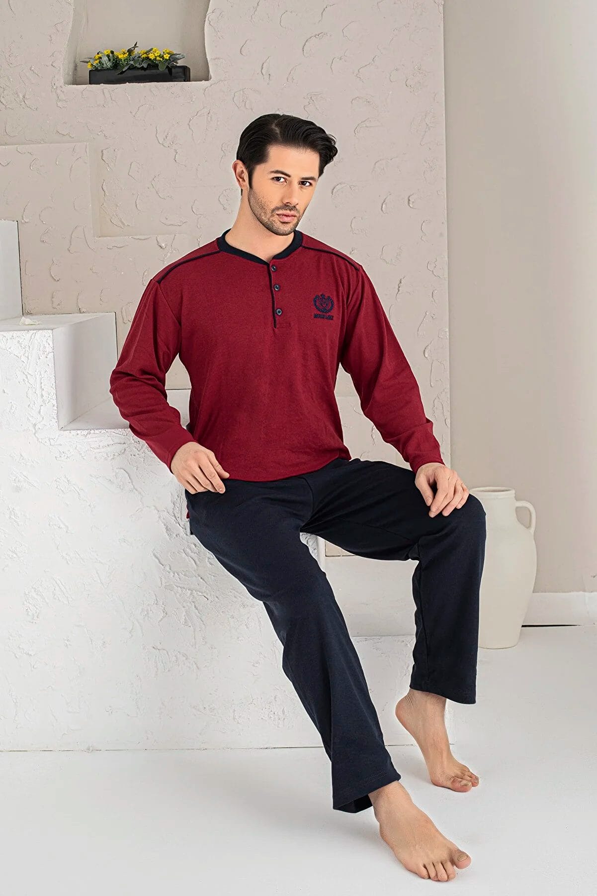 مجموعة بيجاما للرجال بأكمام طويلة وقماش سوبريم مخملي فخم من ميريلا باللون المطرزة على الصدر توفر راحة فائقة وتصميمًا أنيقًا للإطلالة اليومية