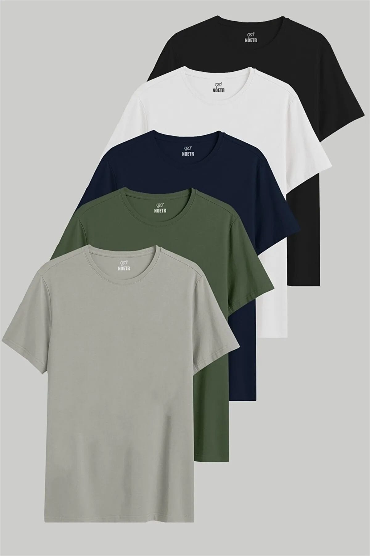 مجموعة تي شيرت مريحة من القطن للرجال أسود أبيض وأزرق كحلي ورمادي كاكي ورمادي مكون من 5 قطع من نويتر