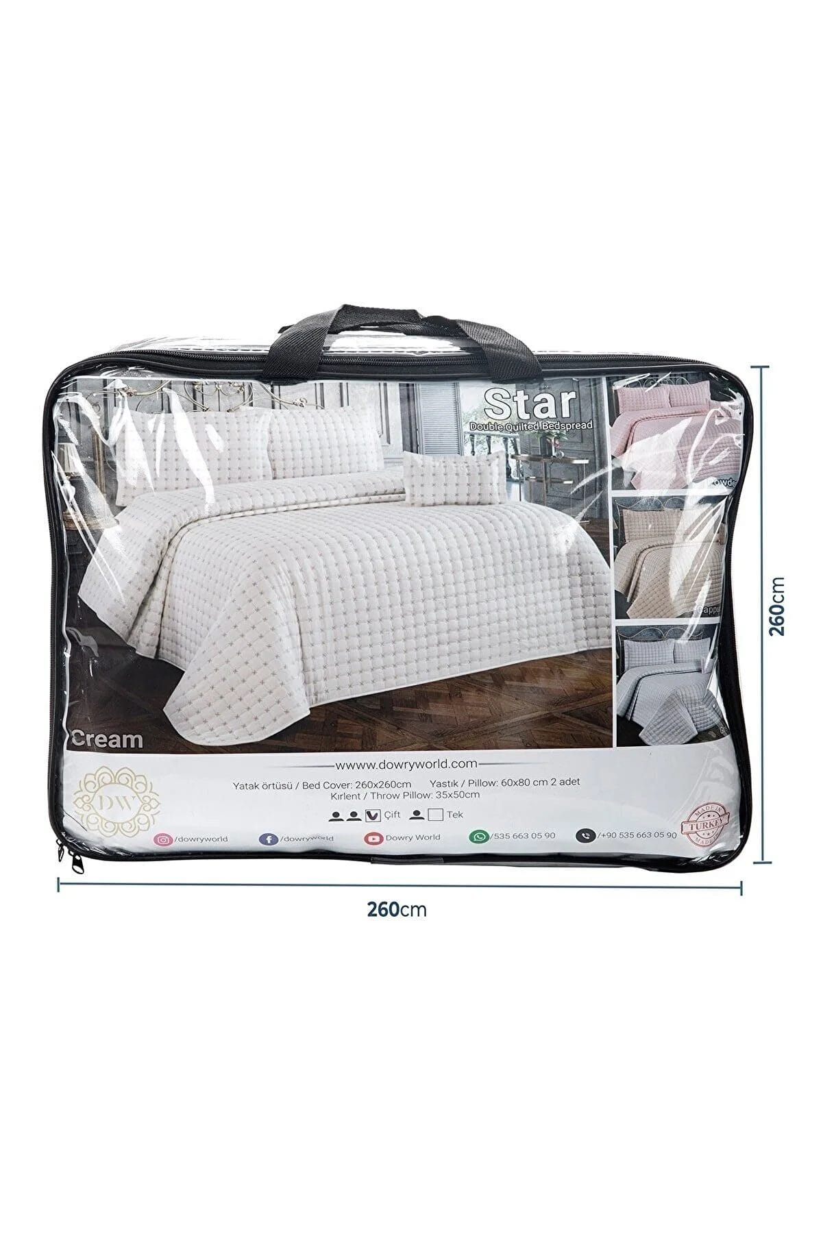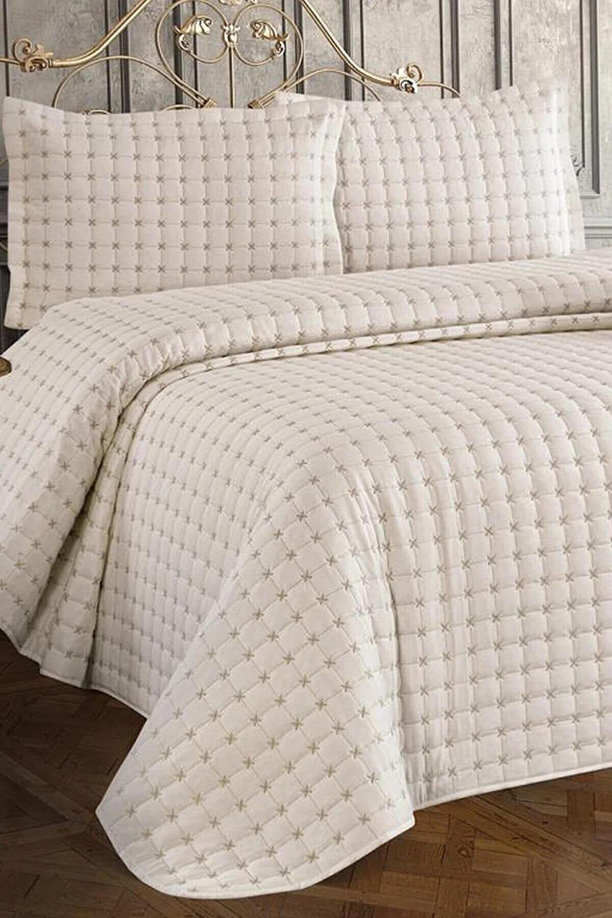 مفرش سرير مبطن مزدوج باللون الكريمي من شيز ديارى