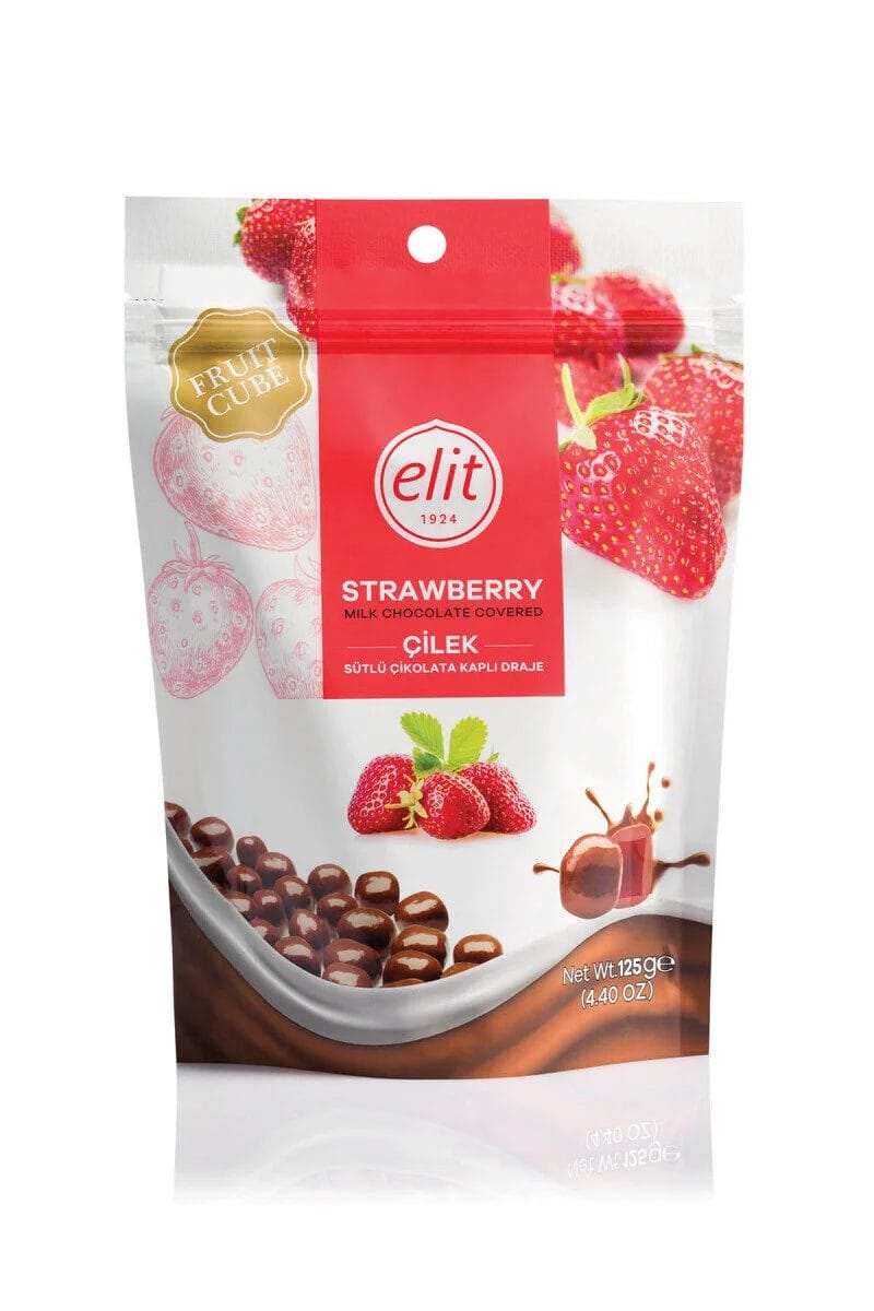 مكعبات فاكهة الفراولة المغطاة بشوكولاتة الحليب من إيليت 125 جرام